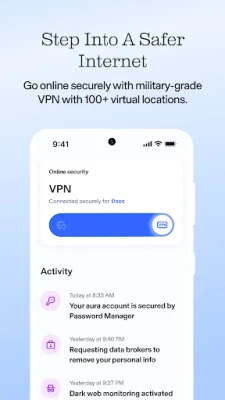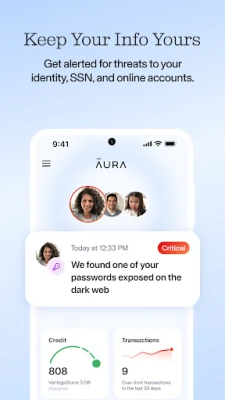 Aura is an all-in-one digital safety and protection solution to help keep you safe from identity theft, financial fraud, and online threats. Protect your data and stay ahead of threats. Our award-winning technology¹ provides security & protection by monitoring & alerting if your identity, data, passwords, credit, or financial accounts are at risk. Aura alerts you to credit fraud up to 250x faster than the competition.² Aura's protection & security helps stop threats before they strike.
