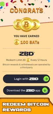 ✅ Earn real Bitcoin (BTC) via Zebedee (ZBD) rewards
