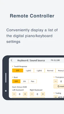 Check and adjust the digital piano/keyboard's settings on the app while you play.