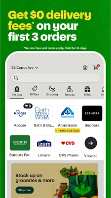With Instacart, grocery savings are made easy. Get the best of grocery and food technology services all in one easy to use app. Order drinks, household items, snacks, groceries, or your favorite cuisine. You can even access same-day delivery across the US. Prefer pick up? Make your grocery orders online, pick up at your local store, and skip the fees. Download the app to see what supermarkets are available in your zip code.