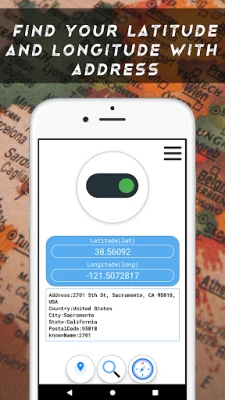 Get accurate latitude and longitude information on your position. The app uses your phone\'s GPS to locate your coordinates accurately and fast.