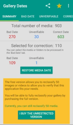 The free version allows you to process 50 images or videos to allow you to verify that this application meets your needs. The files can be selected individually or by folder if you do not want to correct your entire gallery.