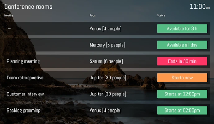 You can also create a beautiful dashboard view to see a list of meetings upcoming in all conference rooms on one screen.