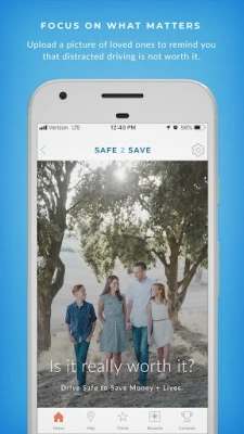 Earn points as you drive undistracted and redeem them at local businesses you love. Texting and driving makes us all 23 times more likely to be in an accident. Is that text so important it cannot wait? Your loved ones are worth it! Download a picture of them on the app to remind you just how important they are.