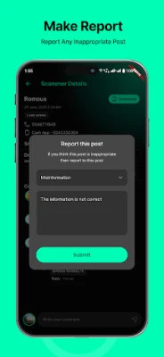 - **Scammer Database:** Users can add information about scammers they encounter, including names, contact details, and scam descriptions, to warn others and raise awareness.