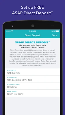 **Direct Deposit early availability depends on timing of payor’s payment instructions and fraud prevention restrictions may apply. As such, the availability or timing of early direct deposit may vary from pay period to pay period. Make sure the name and social security number on file with your employer or benefits provider matches what’s on your Green Dot account exactly. We will not be able to deposit your payment if we are unable to match recipients.