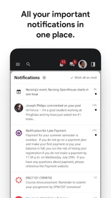 - Receive key notifications from EZ-Arts, Canvas, Registrar and Student Accounts.